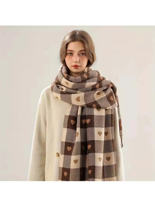 Elevate your cold weather style with this beautifully designed winter scarf that blends comfort, warmth, and soft elegance. Its charming heart and checkered pattern adds a lovely touch to any outfit, making it a standout accessory during chilly days. Crafted from gentle and breathable material, it keeps you warm without feeling heavy.
